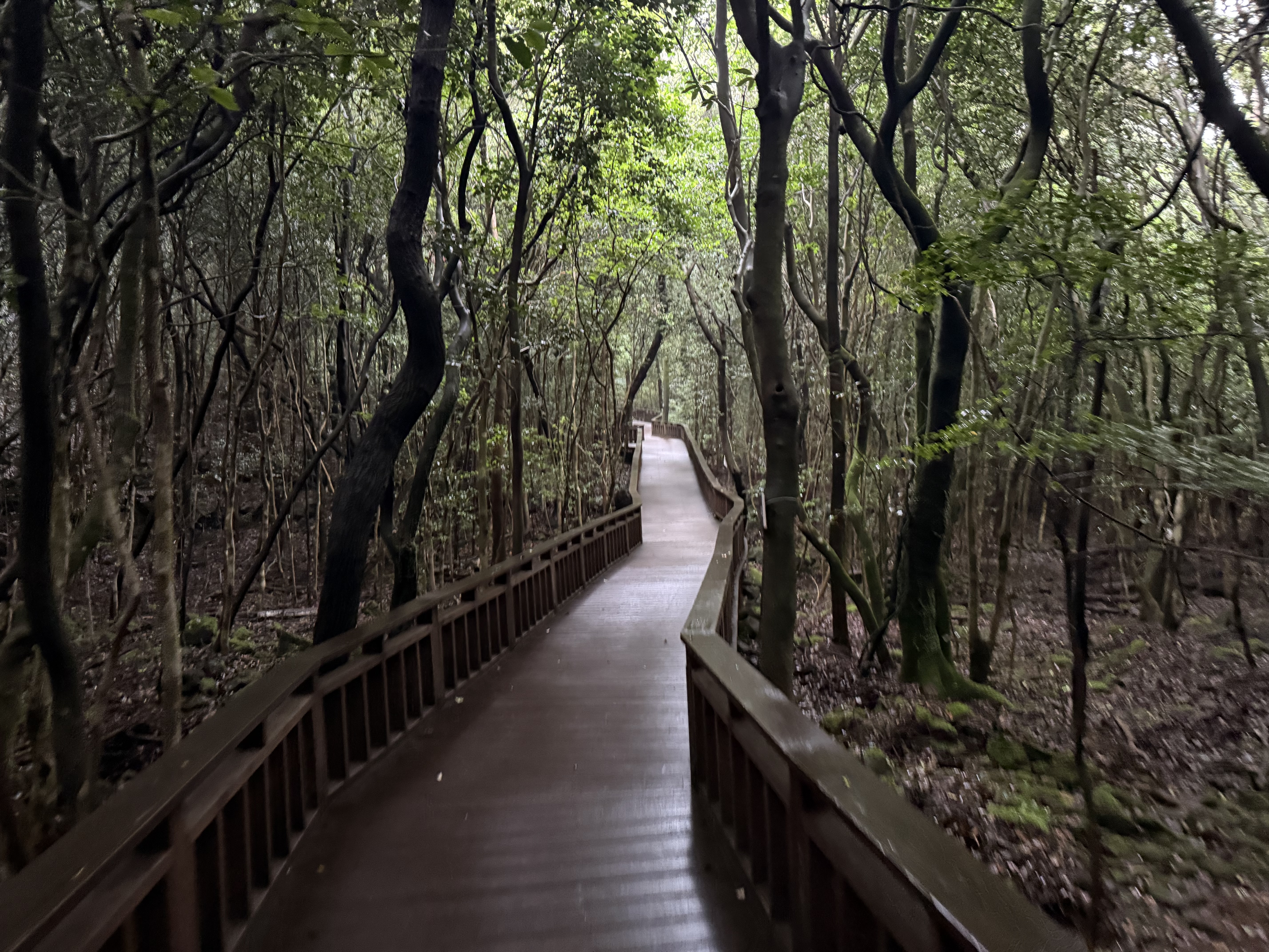 - 가멍오멍 숲길 (왕복 1.9km): '가면서 오면서'라는 뜻의 제주어 이름처럼, 휠체어나 유모차도 편안하게 다닐 수 있는 무장애 숲길입니다. 완만한 경사로 이루어져 있어 가볍게 산책하며 피톤치드를 즐기기에 좋습니다.