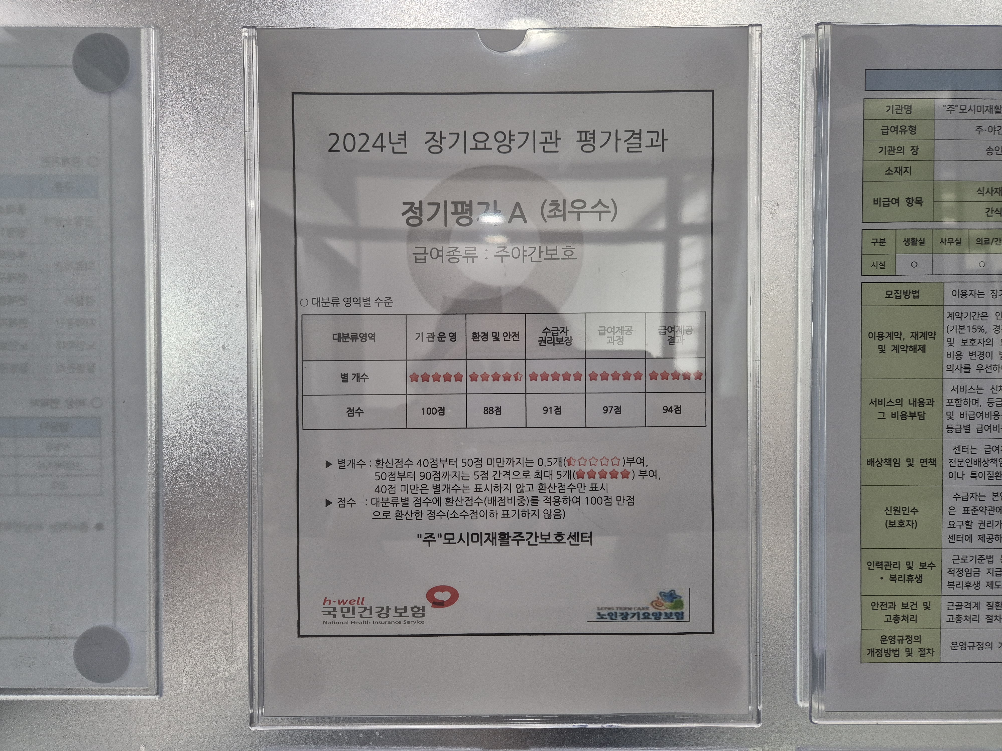 | 1 | 공식 평가 등급 | 2024년 장기요양기관 '평가A' 등급을 받았는지 확인해야 합니다. |
