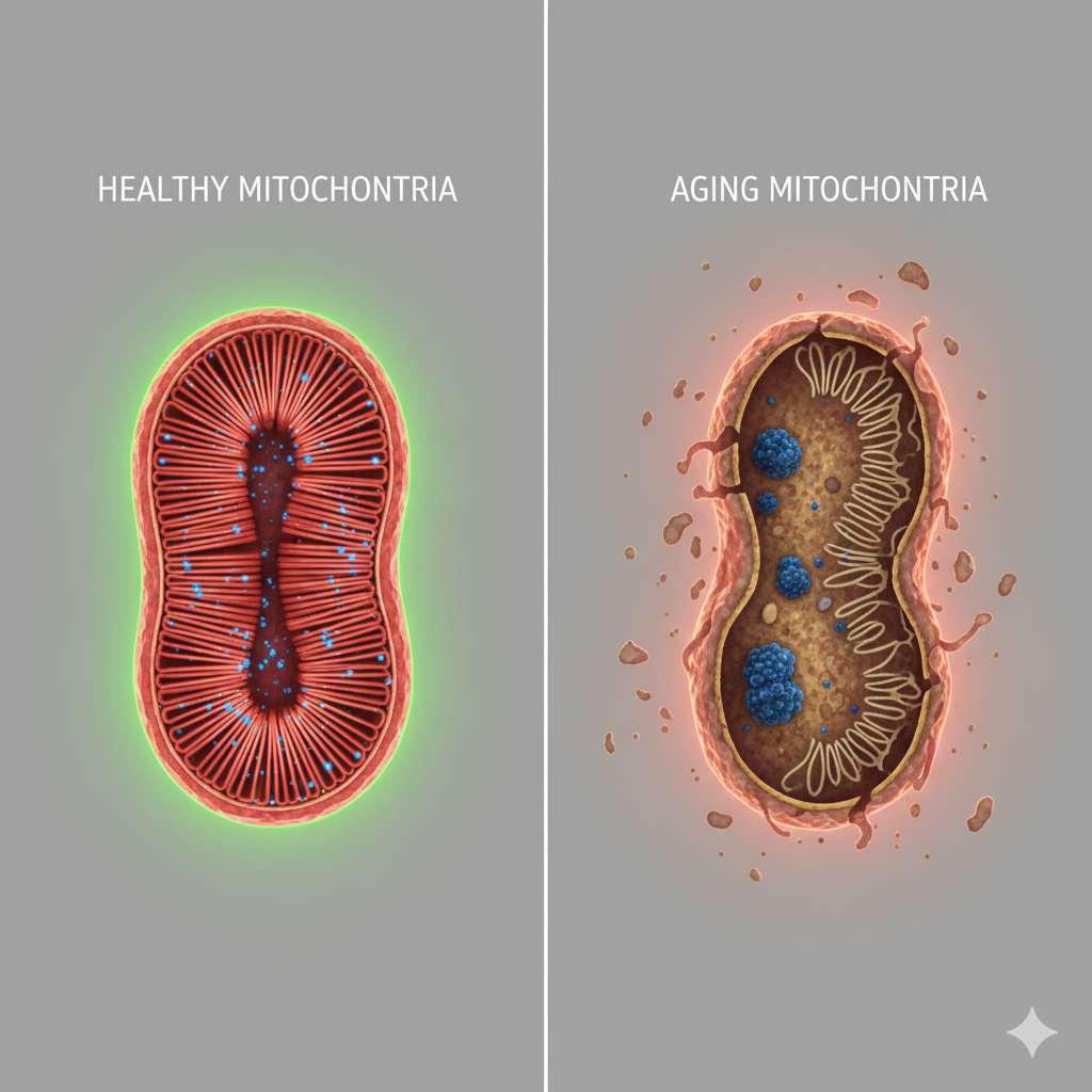 A1. 일상에서 쉽게 느끼는 지표는 '활력'입니다. 충분히 쉬어도 피곤하거나 상처 회복이 느리고 피부가 부쩍 푸석해졌다면 미토콘드리아 기능 저하와 만성염증을 의심해 봐야 합니다.